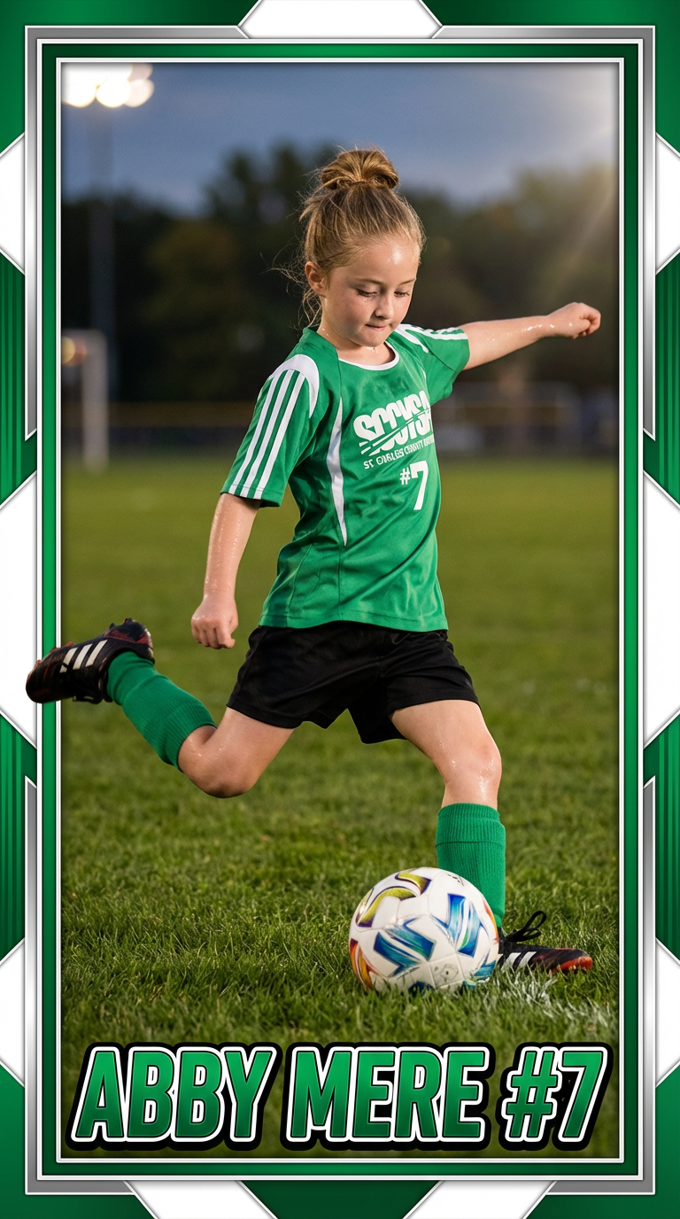 Snap a pic or upload from your camera roll. Any casual photo works — game day, practice, or backyard.